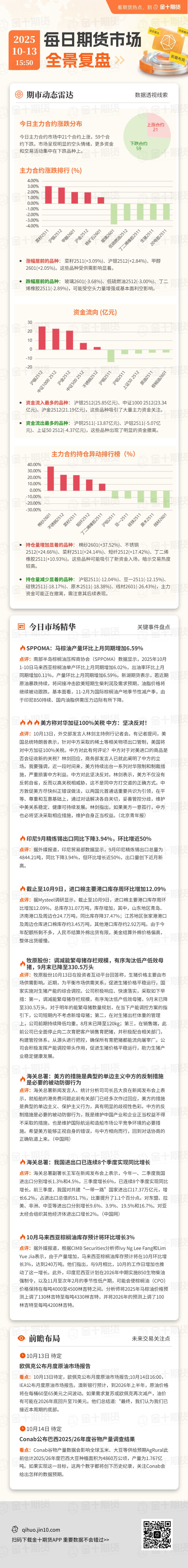 每日期货全景复盘10.13:贵金属午后涨幅双双扩大,沪银再创新高!