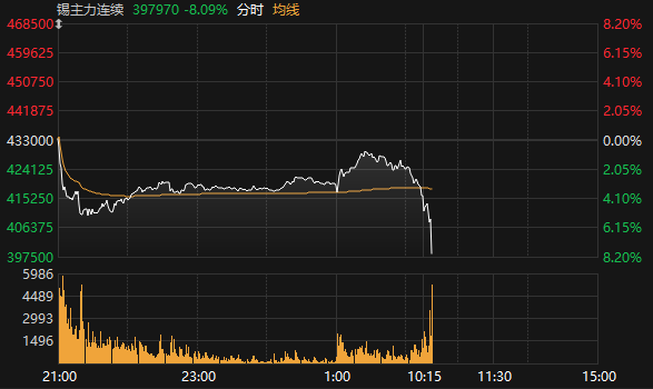沪锡期货主力合约日内跌8%