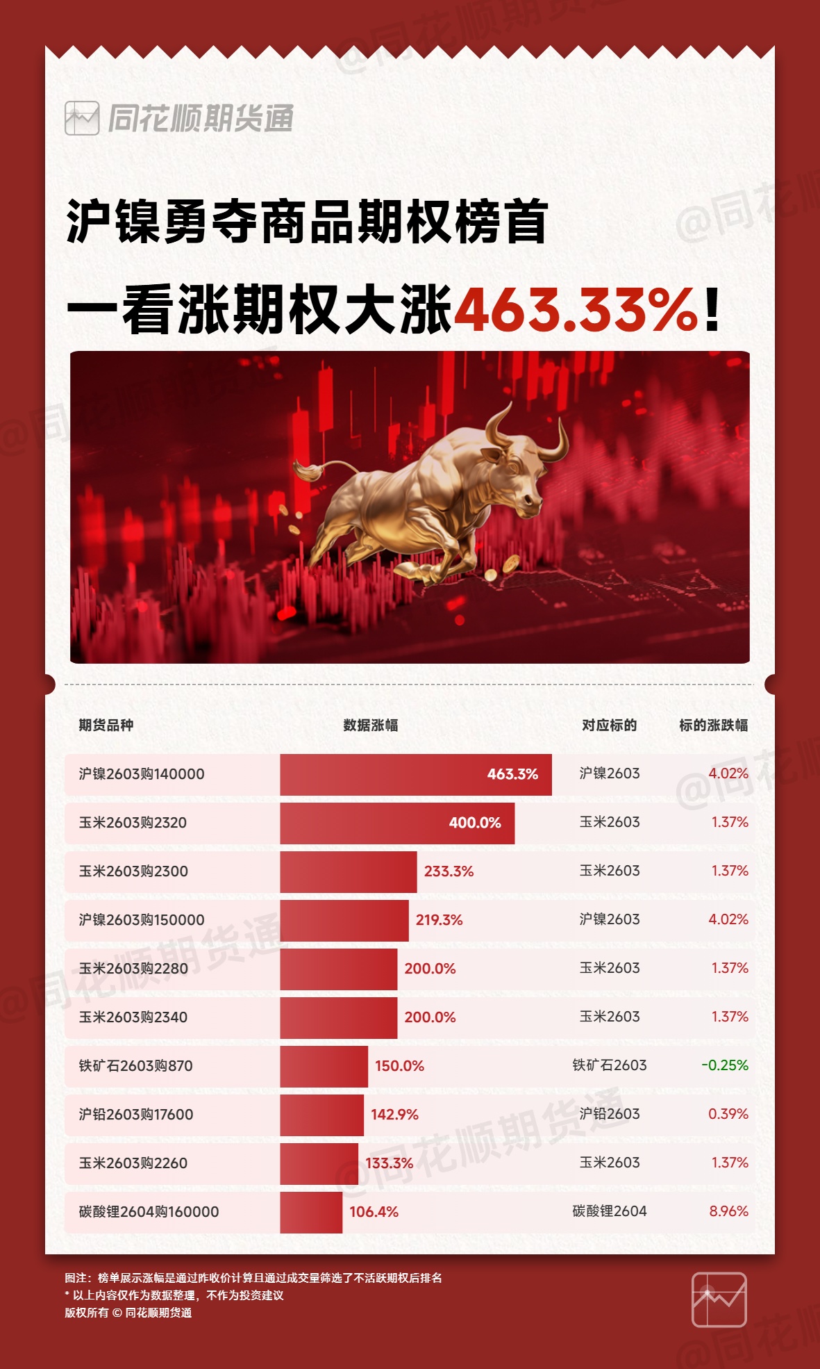 沪镍勇夺期权榜榜首,一看涨期权大涨463.33%!