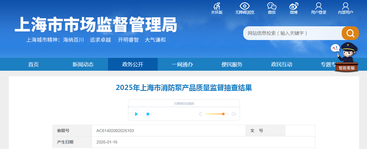 2025年上海市消防泵产品质量监督抽查结果公布