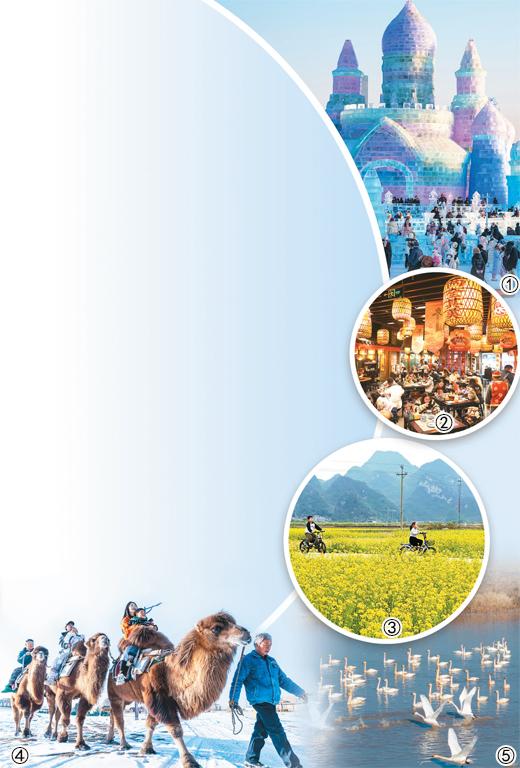 图③:元旦假期期间,广西忻城县古蓬镇东河村油菜花迎来盛花期。樊绍光摄(人民视觉) 图②:2026年1月3日,在江苏南京,市民游客在南京大牌档鼓楼紫峰店就餐,盐水鸭、美龄粥、赤豆元宵等经典 美食备受青睐。徐 琦摄(人民视觉) 图④:2026年1月3日,甘肃张掖神沙窝太阳岛冰雪嘉年华活动现场热闹非凡。图为市民游客沉浸式体验趣味冰雪 项目。杨 潇摄(人民视觉) 图⑤:冬日,湖北洪湖国家级自然保护区里,成群的候鸟翱翔、觅食。薛 婷摄(人民视觉) 小寒已过,三九又至。当霜花覆满枝头、薄雪铺就小径,锦绣山河,气象万千。 从北方的冰瀑与雾凇,到南方的粉樱与艳阳;从沙漠里的雪景,到山谷深处的云海……山川河流、雨雪冰霜,每 一寸土地都浸润着浓浓冬意。 冬日中国的故事,同样精彩纷呈。乐享冬日浪漫,有多种"打开方式"。 图①:2026年1月2日,黑龙江哈尔滨冰雪大世界游人如织。耿洪杰摄(人民视觉) 感受冬天 看清一片雪花的形状、迎接刮面冷风的凉意、触摸层层积雪的柔软……感受冬天,最为直接的方式就是来一场冰 雪游。 "从来没想过,冬天可以这么好玩又好看!"在吉林省延边朝鲜族自治州安图县,来自浙江的游客刘先生和家人一 边拍照一边感慨, ...
