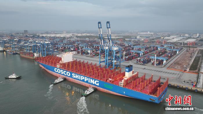 Core Insights - The arrival of the 200,000-ton container ship "COSCO Shipping Gemini" at the Qinzhou Automated Container Terminal marks a significant milestone for the North Bay Port, being the largest and longest container ship to dock since its establishment [1][3] - The ship has a capacity of 20,119 TEUs and will operate with 13,000 TEUs at Qinzhou Port before heading to Rotterdam, Netherlands, integrating into the Asia-Europe trade route [1][3] Group 1 - The successful docking of "COSCO Shipping Gemini" and another large container ship, "COSCO Shipping Pacific," indicates a breakthrough in the North Bay Port's capability to handle ultra-large vessels regularly [3] - The Qinzhou Port area is enhancing its overall layout as a hub, channel, and network, with capabilities for 200,000-ton container ships and 300,000-ton oil tankers [3] Group 2 - In the first three quarters of this year, the foreign trade container supervision volume at Qinzhou Port reached 874,000 TEUs, reflecting a year-on-year increase of 28.4% [3] - The North Bay Port's shipping network has expanded to 91 routes, covering major ports in coastal China, Southeast Asia, and Northeast Asia, and extending to South Asia, Africa, and South America, facilitating easier export paths for goods from western China [3]