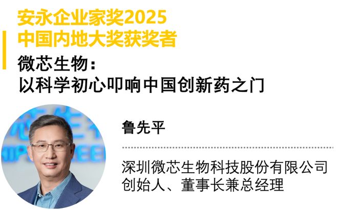 2025年12月5日,第二十届"安永企业家奖"评选结果揭晓。今年是"安永企业家奖"落地中国内地、香港 及澳门的第二十年,二十年间,这个舞台先后走出了232位中国商业精英,而今年的获奖者阵容尤为引 人注目——12位来自中国内地和香港/澳门的获奖者中,既有在生命科学领域攻克原创药研发难关的科 学家型企业家,也有在精密制造领域深耕数十年的实业家,更有在人工智能、芯片设计等前沿赛道开拓 疆域的创新者。 其中,深圳微芯生物科技股份有限公司创始人、董事长兼总经理鲁先平,东江集团(控股)有限公司主 席兼执行董事李沛良,分别获得"安永企业家奖"2025中国内地大奖以及"安永企业家奖"2025中国香港/ 澳门大奖。 "让中国人用得起全球竞争力的原创新药。"二十多年前,面对被仿制药主导的中国,作为科学家的鲁先 平看到的是患者"无药可用"或"天价用药"的困境。"我们有责任去改变这种现状",一颗原创新药的种子 自此埋下。 带着技术和人才,鲁先平回到深圳创办微芯生物,自此踏上中国创新药"从0到1"的拓荒之路。如今,这 家初创企业已孕育出西达本胺、西格列他钠两款全球首创药物,成为中国医药创新史上的标杆。 从诞生起,微芯生物就锚定"源头创 ...