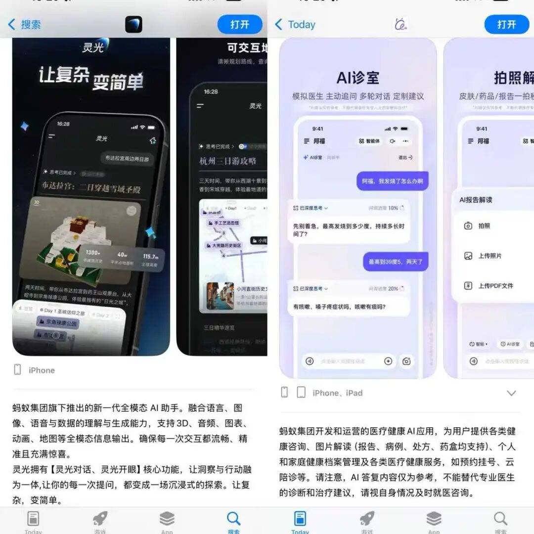 ● 0 0 0 中身女演可 让看病 000 lymi L 作者 | 柴旭晨 编辑 | 王小娟 近日,蚂蚁集团在AI健康领域落下关键一子,旗下AI健康应用AQ正式宣布品牌升级为"蚂蚁阿福"。这背后,是其身份定位的转变,从工具到服务深度重 构。升级后的"阿福"聚合了健康陪伴、健康问答、健康服务三大核心功能。新版App发布后下载量激增,迅速登上苹果应用商店榜第3位。 这套组合拳背后,是阿福从"工具",向专业AI健康朋友的角色转变。 过去一个月,蚂蚁在AI领域动作频频,11月原"数字医疗健康事业部"升级为"蚂蚁健康事业群",跻身集团五大核心战略板块。医疗健康被蚂蚁确立为战略赛 道。随即,健康应用全面升级。同时,蚂蚁推出通用AI助手"灵光",以"闪应用"差异化破局,6天下超200万,引发行业关注。 "在AI这波浪潮中,医疗健康远远没有被定义。"蚂蚁集团副总裁、蚂蚁健康事业群总裁张俊杰向华尔街见闻直言。 "我们围绕用户需求,在专业化、个性化、自动化三个方面想怎么能够做得更好。"在张俊杰看来,这几个点做到,用户体验一定会大幅提升。"真正围绕老 百姓的痛点,用AI的方式去解决的服务,还可以更多。" 区别于市面上大多数"聊天机 ...