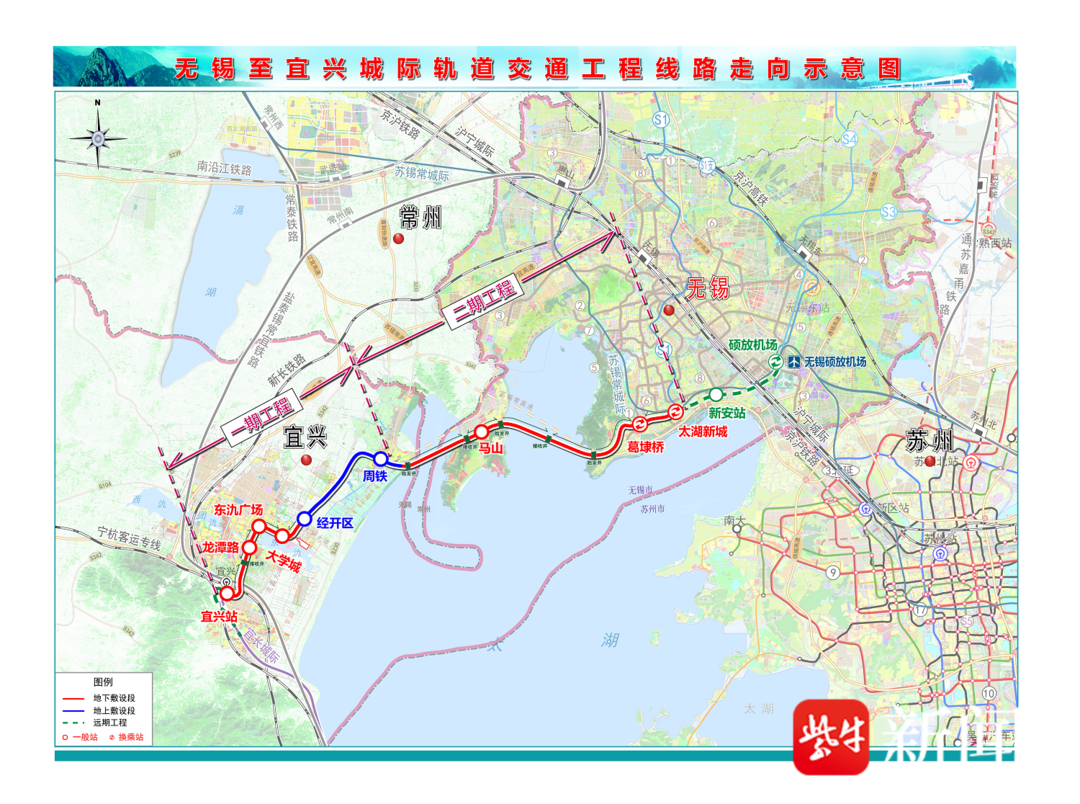 正在建设中的锡宜S2线,连接无锡本市区和宜兴市,全长约61.48公里,设计时速160公里,共设9座车站(地下站7座、高架站2座),是构建无锡"半小时通 勤圈"、推动锡宜一体化及长三角一体化的重要基础工程。目前,9座车站中的东氿广场站、马山站、大学城站、宜兴站、龙潭路站5座车站正在进行主体 结构施工,太湖新城站、葛埭桥站2座车站处于围护结构施工,其余各站点正在加快前期手续办理。 其中,穿太湖段为工程核心控制性节点,需采用4台14米级超大直径盾构机分4个区间掘进,隧道总长21.6公里,将穿越梅梁湖、竺山湖水域及马山镇,为 国内首条穿太湖的超大直径盾构隧道工程。 此次成功下线的"锡望号"最大开挖直径14.08米,整机长约132米,重约3600吨,将负责梅梁湖西至梅梁湖中工作井区间约5.5公里隧道施工,最大覆土埋深 30.86米。其刀盘涂装无锡城市LOGO"玉飞凤",蕴含君子比德于玉的深厚寓意。玉飞凤秀逸翔动之姿,既喻隧道人尚德进取、聪慧灵秀之质,又象征无锡 祥瑞腾飞之势,契合"尚德务实、和谐奋进"的城市精神内核。 "熙怡号"开挖直径14.02米,整机长120米,重约3200吨,将承担竺山湖西至竺山湖东工作井区间约7 ...