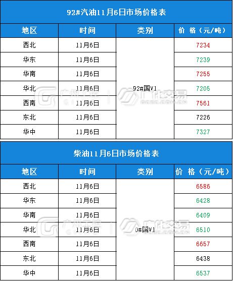 International News - Iraq's Prime Minister has ordered the cessation of imports of gasoline, diesel, and kerosene as domestic production meets national consumption needs [1] Domestic News - The Anhui Provincial Ecological Environment Department has announced a special inspection of industrial enterprises' air pollution prevention facilities in 13 cities, focusing on issues such as non-compliance with construction permits and illegal emissions [2] Oil Prices (as of November 6) - 92 gasoline prices range from 7205 to 7561 CNY per ton across various regions, with the highest price in Southwest China [2] - Diesel prices range from 6409 to 6657 CNY per ton, with the lowest price in Northeast China [2] Chemical Prices (as of November 6) - Polypropylene prices range from 6330 to 7550 CNY per ton, varying by region [3] - Polyethylene prices range from 6850 to 10100 CNY per ton, with significant regional differences [3] Alkali Prices (as of November 6) - Liquid caustic soda prices range from 800 to 1280 CNY per ton, depending on concentration and region [4] Alcohol Prices (as of November 6) - Methanol prices range from 1630 to 2450 CNY per ton across different markets [5] Hydrogen Peroxide Prices (as of November 6) - Hydrogen peroxide prices range from 730 to 1790 CNY per ton, depending on concentration and region [5] Chemical Bulk Prices (as of November 6) - Prices for various chemicals such as phosphoric acid, potassium nitrate, and urea show slight fluctuations, with phosphoric acid priced at 3363 to 3447 CNY per ton [6][7]