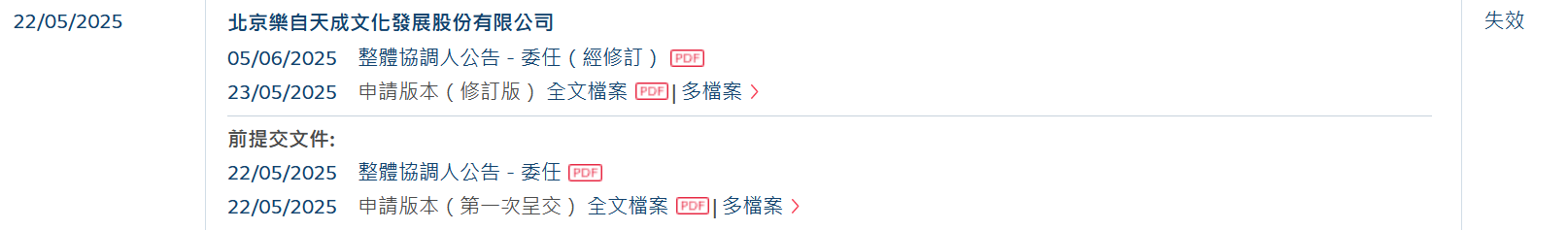 招股书显示,乐自天成是中国领先的IP玩具公司,截至2024年12月31日,公司拥有超过100个自有及授权IP。根据灼识谘询,按2024年中国GMV计,公司在 中国多品类IP玩具公司中排名第二,而按相同标准衡量,公司为第三大中国IP玩具公司。 根据灼识咨询,公司是业内为数不多的、实现全产业链运营的中国公司之一,覆盖IP孵化和开发、产品设计到柔性供应链和全域销售渠道各个环节。利用柔 性供应链管理,公司维持了高效、可规模化拓展的运营架构。以"IP中枢"战略、多品类运营能力和全产业链布局为核心,公司持续推出包括蜡笔小新、猫和 老鼠等在内的授权IP热门产品。 北京乐自天成文化发展股份有限公司(简称:乐自天成)5月22日所递交的港股招股书满6个月,于11月22日失效,递表时花旗和华泰国际为联席保荐人。 ...