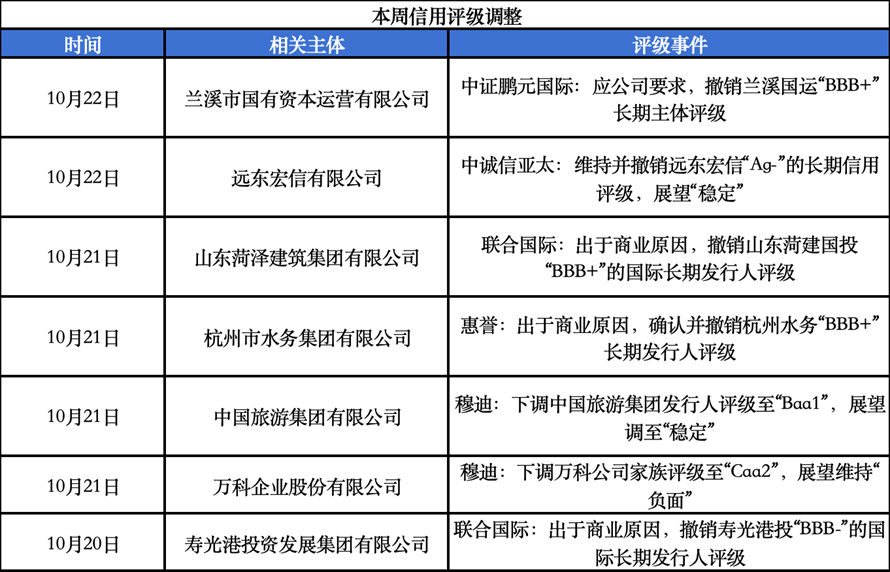 中资离岸债风控周报(10月20日至24日):一级市场发行回暖 二级市场集体上涨