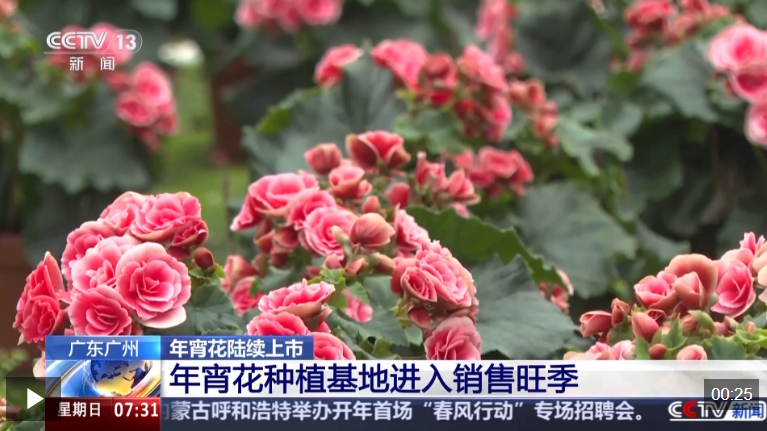 据广州市农业农村局预计,2026年春节广州年花总产量预计2000万盆。 春节临近 佛山蝴蝶兰迎热销 过年怎能没有花卉的装点,从腊月起,年宵花就迎来销售旺季。广州作为我国重要的花卉生产基地,不少年花种植企业开始进入销售高峰。 广州年宵花种植基地进入销售旺季 0:00 这段时间,在增城区五联村大棚里,各色玫瑰海棠盆栽正处于盛花期,其花色覆盖红、粉、黄等多种色系,花型饱满。 花卉生产基地负责人 冷书林:玫瑰海棠主要是有5个颜色,颜色比较多,看起来五彩缤纷的,也适合我们过年的气氛。 多头菊的丰收期一般在秋季,然而元江县的干热河谷气候为鲜花生长创造了绝佳条件。每年8月至次年4月,当其他鲜花种植区的花卉因气候寒冷受限时,元 江县却迎来了鲜花种植的黄金期,成为花卉企业集中生产、承接订单的繁忙时节。 云南玉溪元江县某花卉有限公司总经理 普宏荣:我们来元江投资的最主要的原因是元江有气候优势,可以反季节生产鲜切花。 广东佛山南海区里水镇是全国重要的蝴蝶兰主产区之一,那里的蝴蝶兰这段时间也提前进入销售旺季。 当地花卉基地日均发货量稳定在1万株以上,产品不仅销往国内多地,还出口至港澳及东南亚市场。 在里水镇的一处蝴蝶兰种植基地内,经 ...