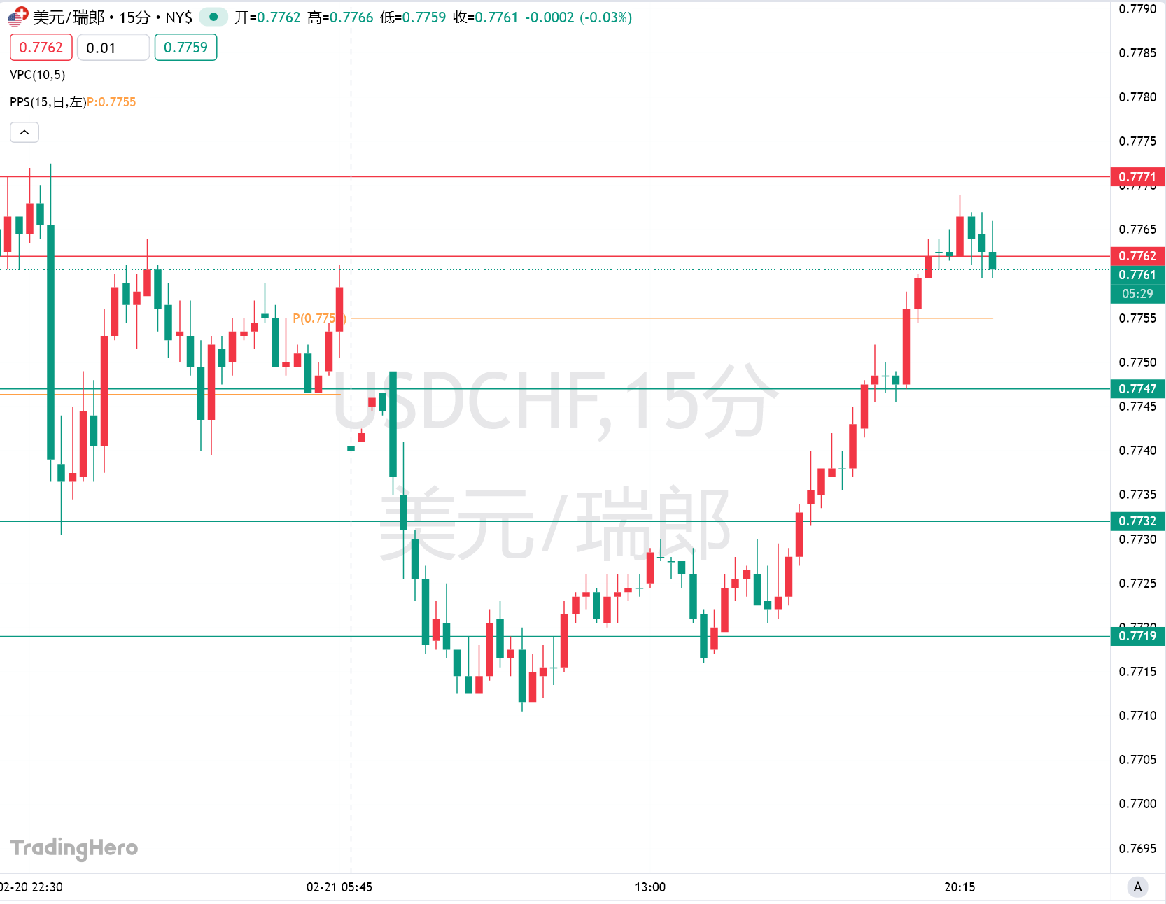 政策层面,瑞士央行连续维持0%利率不变,虽未关闭负利率大门,但对重启负利率持谨慎态度,同时 明确将在必要时干预外汇市场,缓解瑞郎过度升值压力。美国方面,去美元化加速、财政赤字高企及降 息预期,削弱美元吸引力,美瑞利差收窄进一步支撑瑞郎走强。 技术面看,美元兑瑞郎长期处于下行通道,价格中枢持续下移。日线级别,汇价受EMA50压制,RSI发 出负面信号,短期跌破看涨修正趋势线,整体偏向弱势,但受0.7725关键支撑牵制,多空博弈加剧。 关键点位:美元兑瑞郎上方重点关注0.7750及0.7800压力区,突破则有望缓解下行压力;下方需守 0.7725支撑,跌破或加速下探0.7700关口,进一步调整或测试0.7680区域。 2月27日,美元兑瑞士法郎实时汇率报0.7733,微跌0.0646%,日内波幅0.7727-0.7747,呈窄幅震荡;瑞 郎兑人民币报8.8472,微涨0.0619%,延续近期强势格局。当前瑞郎凭借避险属性持续走强,受全球贸 易不确定性、瑞士央行政策取向及美欧货币政策分化影响,短期维持强势整理,中期走势取决于避险需 求延续性与央行干预力度。 瑞郎持续走强的核心支撑是其"最像黄金"的避险属性。全球贸易 ...