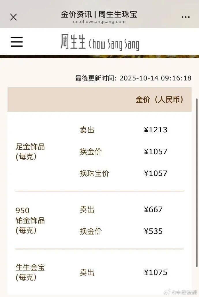 Group 1 - The core point of the article highlights that gold prices have surged significantly, with spot gold rising nearly $15 to surpass $4,130 per ounce for the first time [1][3] - As of October 14, the domestic gold jewelry price from Chow Sang Sang is reported at ¥1,213 per gram, an increase of ¥25 per gram from the previous day [1][2] - Since 2022, the international gold price has seen a cumulative increase of 123%, with a year-to-date rise of over 53% in 2025, indicating a strong upward trend [3] Group 2 - The rapid increase in gold prices is characterized as "rocket-like," with the price crossing the $3,500 per ounce mark on April 22 and reaching $4,000 in just 169 days [3] - The current market dynamics are influenced by multiple global risk factors, contributing to the heightened interest from investors [3]