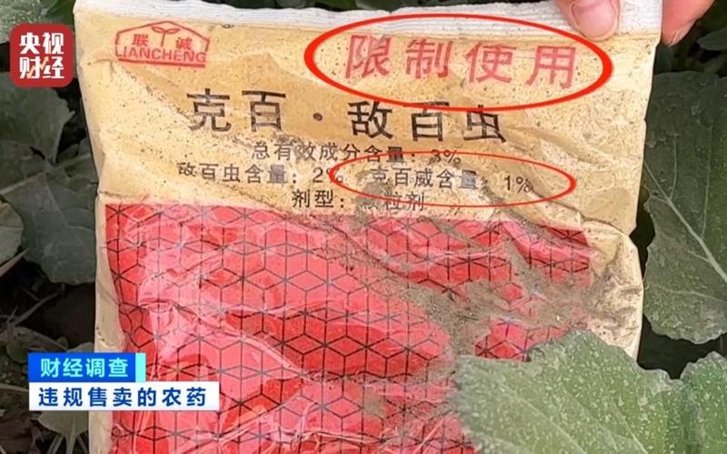(央视财经《财经调查》)《财经调查》栏目近日接到消费者的举报,个别地方的商户和个别企业,依旧在违规销售国家明令禁止及一些限制使用的含毒农 药。 个别菜商违反国家规定使用含毒农药 克百威是一种广谱性杀虫、杀螨、杀线虫剂,属于含毒农药。农业农村部第199号公告明确规定,克百威不得用于蔬菜、果树、茶叶和中草药材上。同时, 《中华人民共和国农业农村部公告第736号》中规定,自2024年6月1日起,撤销含克百威制剂产品的登记,禁止生产。 2025年11月底,《财经调查》栏目接到群众举报,在湖北省天门市岳口镇,有人在蔬菜上使用农药呋喃丹,呋喃丹也就是克百威。记者专程来到举报信中提 到的岳口镇七屋巷村,刚进入村里记者就闻到一股刺鼻的农药味。记者在村里的菜地发现了举报信里提到的农药"克百·敌百虫",一共有十多个包装袋,包 装袋的封口均被打开。 记者发现,这些包袋上标明"克百威含量1%",为"限制使用",在产品性能里强调"本品是由克百威与敌百虫复配加工而成的有机磷杀虫剂,具有触杀、内 吸、胃毒等作用,施于土壤中残效期较长。" 对于弥漫在空气中的农药味,路过的村民向记者道出苦水。 村民还告诉记者,因为了解这片田地蔬菜种植的过程, ...