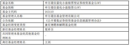 申万菱信基金3只基金增聘夏祥全,王剑离任