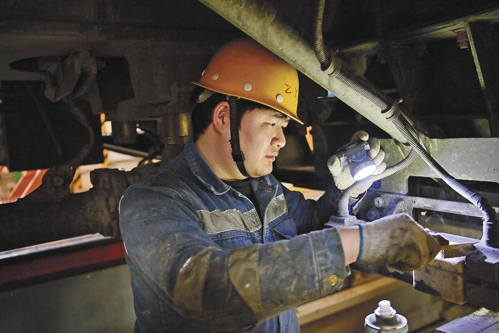 1月23日,中国铁路青藏集团有限公司西宁机务段组织全员对80余台电力机车进行多维度检修提质,确 保春运列车平稳安全运行。图为作业人员测量机车受电弓碳滑板数据。中新社记者 薛蒂 摄 1月23日,中国铁路青藏集团有限公司西宁机务段组织全员对80余台电力机车进行多维度检修提质,确 保春运列车平稳安全运行。图为作业人员检查机车司机室网压表。中新社记者 薛蒂 摄 1月23日,中国铁路青藏集团有限公司西宁机务段组织全员对80余台电力机车进行多维度检修提质,确 保春运列车平稳安全运行。图为检修现场。中新社记者 薛蒂 摄 1月23日,中国铁路青藏集团有限公司西宁机务段组织全员对80余台电力机车进行多维度检修提质,确 保春运列车平稳安全运行。图为作业人员操作系统开展检修。中新社记者 薛蒂 摄 1月23日,中国铁路青藏集团有限公司西宁机务段组织全员对80余台电力机车进行多维度检修提质,确 保春运列车平稳安全运行。图为作业人员检查机车雨刮器装置并维护。中新社记者 薛蒂 摄 1月23日,中国铁路青藏集团有限公司西宁机务段组织全员对80余台电力机车进行多维度检修提质,确 保春运列车平稳安全运行。图为作业人员检查牵引杆吊杆。中新社记者 ...