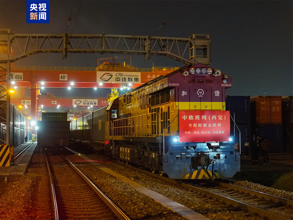 "全程时刻表中欧班列"是指按照沿线各国铁路商定的车次、线路、班期,以及固定的境内外始发、口岸、终到时间开行的中欧班列,运输时效 更稳定,有助于推动中欧班列朝着更高质量、更好效益、更加安全方向发展,保障国际供应链、产业链稳定顺畅。 (总台记者 陈思滢 甘志庆) 至此,西安开行的全程时刻表中欧班列线路达3条,为"中国智造"加速出海提供高效、可靠的国际物流运输通道,为共建"一带一路"高质量发 展注入新动能。 11月22日23时,西安—布达佩斯全程时刻表中欧班列满载着电子产品、汽车配件、日用百货等货物,缓缓驶出西安国际港站。该班列一路向 西,经阿拉山口口岸出境,途经哈萨克斯坦、俄罗斯、白俄罗斯、波兰、捷克、斯洛伐克等国家,最终抵达匈牙利布达佩斯,全程运行10天23 小时。 ...
