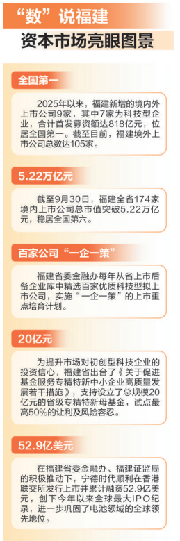 从资本市场看地方高质量发展·福建篇 ecter, (202) 12:12 12:15 12:15 12:10 11:10 1 Mania ... .. tymarks D 技制克总管区域: 维化大陆, 共筑新闻资疗新能完 Charace KURA II o )HVKE | 300884 c > 鸿蒙医院 T T EMMINUT Car f N M N F 魔像 ague 自身 我要 HOLE PERSENER HE AL TO THE HOLD ELECTS UNIT HOT NEW OF E III TIF III III III HI BE BE GE RICOM 1 2018 - 1 - the 工程式 persons and 24 24 500 itis meitu 电影 iel u il 625 HINGORIE J顛技术 光纤器件技术 精密光学技术 衍射光学技术 . ·模压玻璃非球面技术 ula n D HOLDER BIR HOUSE "数"说福建 资本市场亮眼图景 全国第一 2025年以来,福建新增的境内外 上市公司9家,其中7家为科技型企 业,合计首发募资额达818亿元,位 居全国第一。截至 ...