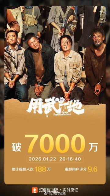 据灯塔专业版实时数据,截至1月22日20时16分,影片《用武之地》票房突破7000万。 ...