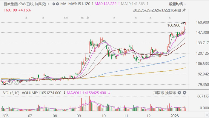 港股异动丨发布文心大模型5.0正式版!百度涨超4%重上160港元,创近3年新高