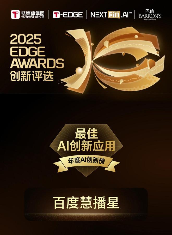 百度慧播星获评钛媒体2025 EDGE AWARDS「最佳AI创新应用」