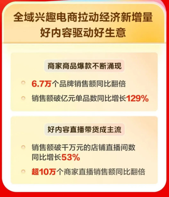 在2025年"双11"大促中,直播电商以全域兴趣电商模式,成为拉动消费新增量的核心引擎之一,不仅带 动传统品类销量攀升,更激活了多元消费需求,为实体经济注入强劲动力。 11月12日发布的《2025"抖音商城双11好物节"数据报告》显示,10月9日至11月11日,6.7万个品牌 销售额同比翻倍,超过10万商家直播销售额同比翻倍,印证了直播电商在激活消费潜力、赋能实体经济 中的关键作用。 好内容,成就好销量。在今天的直播间,优质内容正成为驱动品牌增长的核心引擎。从之禾的"文 化沙龙式"直播,到探路者的"地理反差"上新,从知识型达人的文创分享,到非遗手艺人的技艺呈现, 多样化的内容场景让购物不再是单纯的交易,更成为一种文化体验。平台借助算法技术,精准连接"好 内容""好商品"与"多元需求",既帮助商家降低运营成本、提升转化效率,也为消费者带来更便捷、更 有温度的购物体验,最终实现商家、用户与平台的多方共赢。百雀羚从"销量战场"迈向"价值阵地"的转 型,正是品牌通过自播深耕用户心智的生动例证。这种"内容+品牌"的深度融合,让国潮商品不仅能 够"爆红",更有可能"长红",推动国货从"中国制造"向"中国质造"与"中国智造 ...