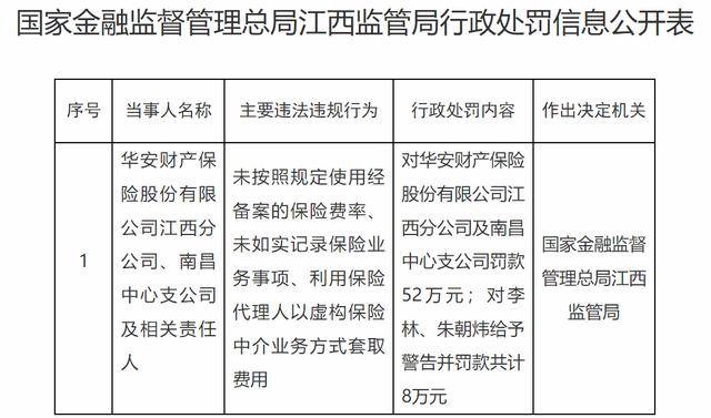 华安财险江西分公司及南昌中支被罚52万元!去年四季度全系统收20张罚单