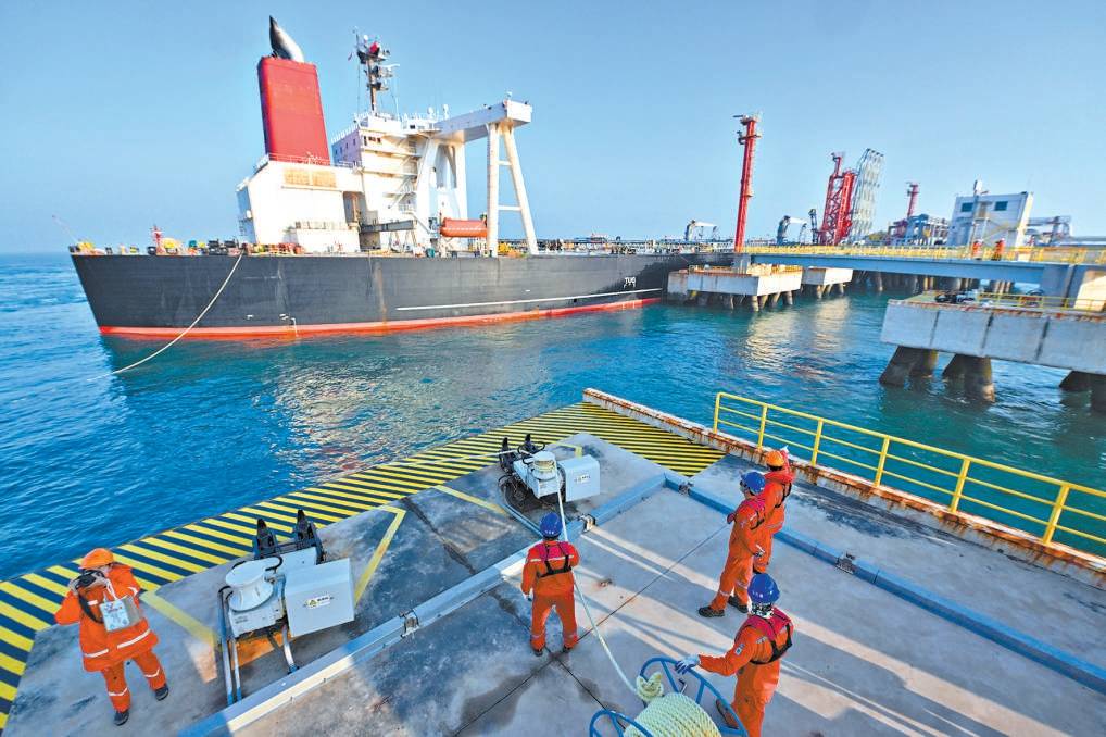 12月18日,一艘装载着17.9万吨石化原辅料的船舶泊入国投洋浦油储码头30万吨级原油泊位。这是海南 自由贸易港正式启动全岛封关后洋浦港口岸第一批通关的"零关税"石化原辅料,进口量为17.9万吨,货 值近4亿元,较封关前在进口环节为企业节省成本近千万元。第一批"零关税"石化原辅料顺利通关,标 志着洋浦石化产业可享受原料"零关税"进口及加工增值免关税内销双重红利,为推动石化产业链往高端 走、往下游走提供了坚实保障。新华社图文 详见2版 ...