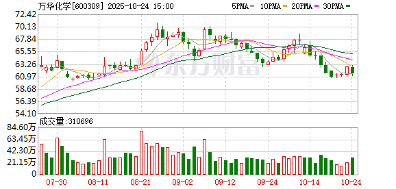 基础化工/化学制品 万华化学(600309.SH) Q3 业绩环比基本稳定,看好公司未来长期成长 2025 年 10 月 27 日 投资评级:买入(维持) | 日期 | 2025/10/27 | | --- | --- | | 当前股价(元) | 62.49 | | 一年最高最低(元) | 83.59/52.10 | | 总市值(亿元) | 1,956.23 | | 流通市值(亿元) | 1,956.23 | | 总股本(亿股) | 31.30 | | 流通股本(亿股) | 31.30 | | 近 3 个月换手率(%) | 66.14 | 股价走势图 数据来源:聚源 -48% -32% -16% 0% 16% 32% 2024-10 2025-02 2025-06 万华化学 沪深300 相关研究报告 《公司 Q2 业绩环比持稳,多项自研技 术逐步落地—公司信息更新报告》 -2025.8.12 《资产减值及报废短期拖累业绩,聚 氨酯产能持续扩张—公司信息更新报 告》-2025.4.16 《Q3 利润短期承压,看好未来业绩修 复和长期成长—公司信息更新报告》 -2024.10.30 金益腾(分析师) 李思佳(分析 ...