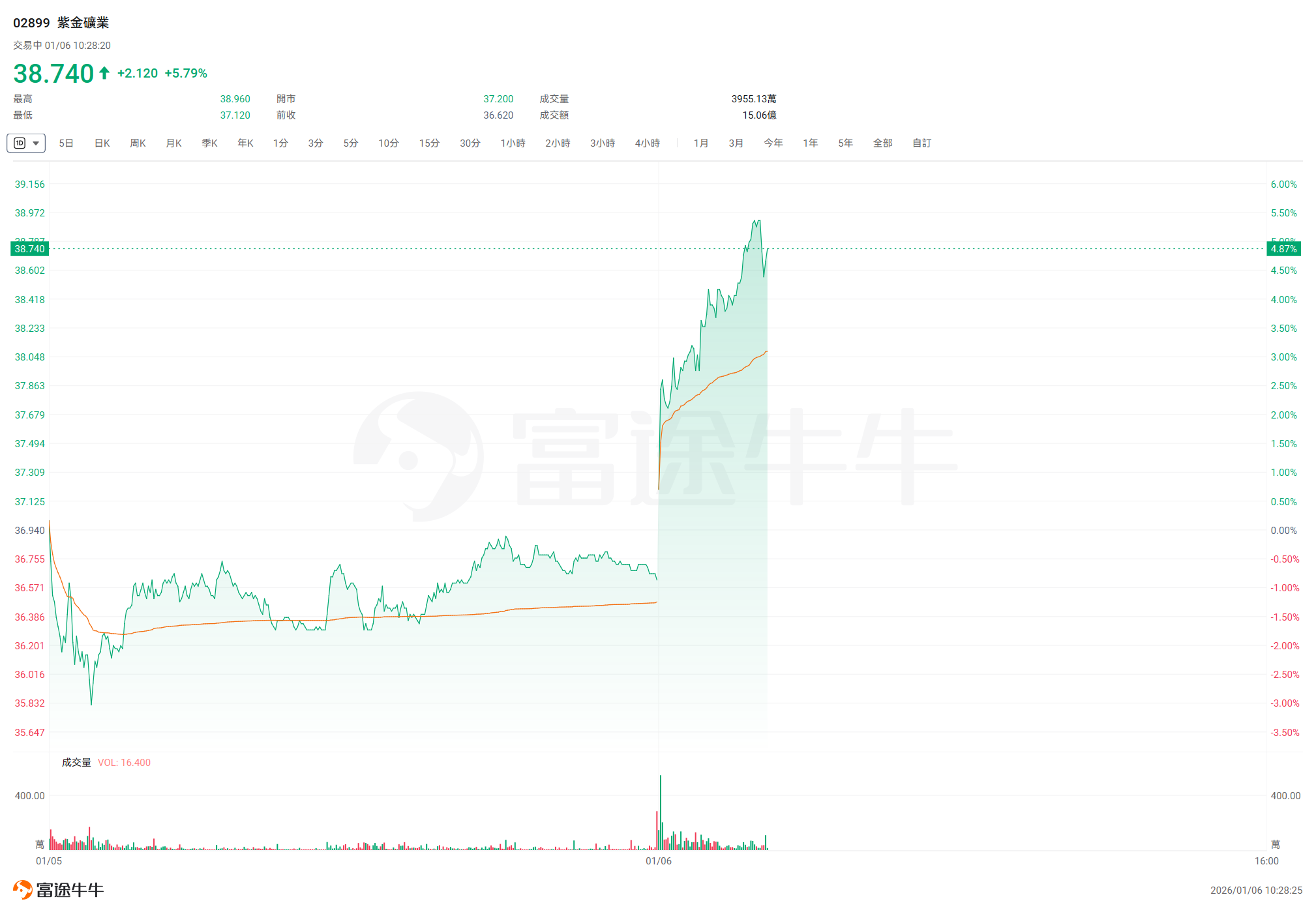 盘中市值破万亿元 紫金矿业股价创历史新高