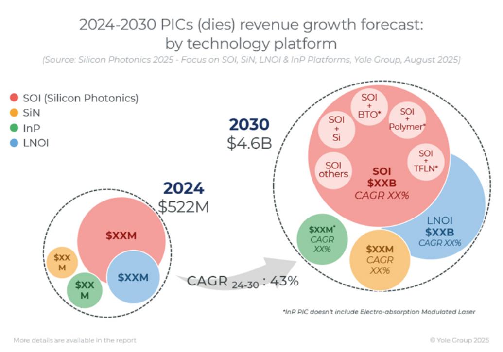 硅光技术,作为现代光通信与半导体领域的关键交叉技术,正逐步从实验室走向市场应用的前沿。其核心逻辑在于将传统光子学器件与成熟的硅基半导体 工艺深度融合—— 通过在硅衬底上集成光发射、调制、传输、探测等全功能模块,实现高速率、低功耗、高集成度的光信号处理与传输。这一技术不仅 为数据中心、电信网络等传统领域带来性能革新,更在人工智能、自动驾驶、量子计算等新兴场景中展现出不可替代的应用潜力,成为支撑下一代信息基 础设施的核心技术之一。 从市场需求端看,硅光产业的增长动力已从"增量需求" 转向 "爆发式需求"。根据Yole 最新报告《硅光子 2025—— 聚焦 SOI、SiN、LNOI 和 InP 平 台》,硅光子行业正进入快速增长与多元化发展的关键期:人工智能持续推动带宽需求呈指数级上升,倒逼行业向更高数据速率转型 —— 预计 200G / 通 道链路将在 2026-2027 年成为主流,并为 800G、1600G 收发器的规模化应用铺平道路。这类高带宽解决方案,恰好匹配超大规模数据中心与 AI 集群对 "高速率 + 高能效" 的双重需求,成为硅光技术商业化落地的核心场景。 新易盛:高速模块 + 低功耗技术双线领跑 ...