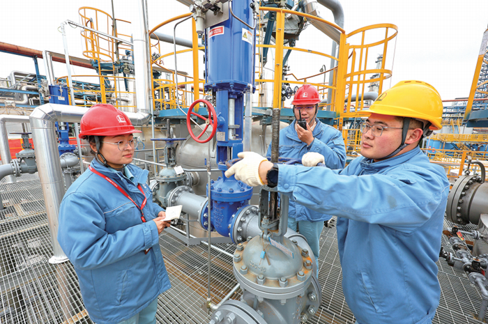 2026年是"十五五"开局之年。新年开好局、定好调,既有利于全年发展,更有利于"十五五"行稳致远。 新年伊始,石油和化工企业正以"开局即冲刺、起步即决战"的奋进姿态,昂首阔步走向"十五五"高质量 发展新征程。 新年之初,中国石油吉林石化公司化肥厂苯乙烯联合车间坚决筑牢安全平稳运行根基,深挖内部潜力, 提升装置平稳率与生产效率,同时通过优化尾气处理流程、强化废弃物回收利用,实现污染物零排放。 中国石油渤海钻探干部员工以"开年即冲刺"的姿态,奏响实干奋进的开年序曲。渤海钻探第四钻井公司 70009钻井队承钻的重点井兴华6平1井,以完钻井深6077米、水平段长1327米、油层钻遇率92.24%,一 举创下巴彦油田水平井最深井深、最长水平段、最薄油层钻遇厚度3项纪录。 图为扬子石化员工在污水预处理环保隐患治理项目现场进行开工检查。 (李树鹏 摄) 中国海油召开新年第一会——安全生产委员会会议,要求守牢安全红线,为"十五五"开局起步夯基垒 台。新年伊始,海油工程青岛国际化高端装备制造基地机器轰鸣、弧光闪闪,10余个项目同步推进, 5500余名建设者冒着严寒、马不停蹄地进行施工,身着红色工服的安全人员穿梭于各作业点位,用 ...