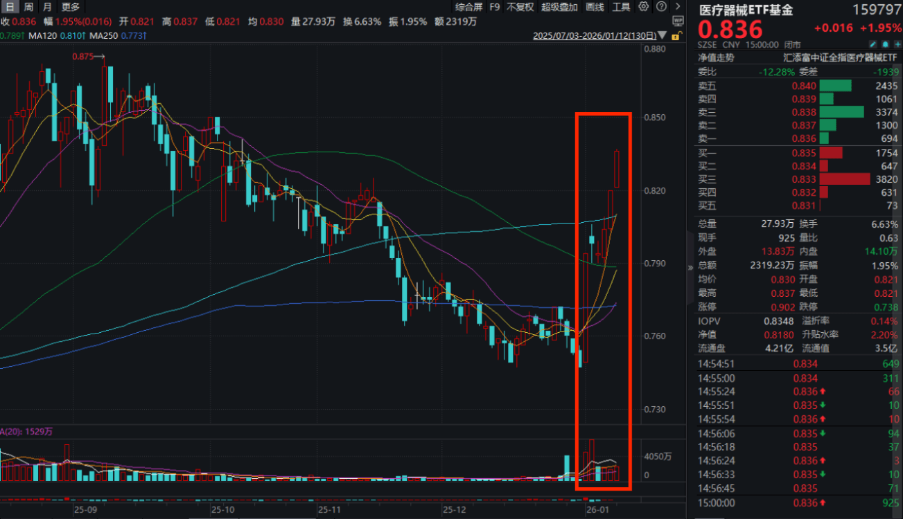 人类首次“太空脑机接口实验”!强脑科技以保密形式提交香港IPO申请!同类费率最低档的医疗器械ETF基金(159797)收涨近2%强势三连阳!