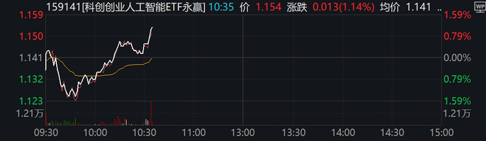 AI需求强劲引发芯片涨价潮,科创创业人工智能ETF永赢(159141)涨超1%