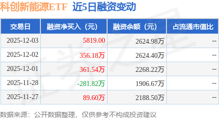 科创新能源ETF:12月3日融资净买入5819元,连续3日累计净买入718.31万元