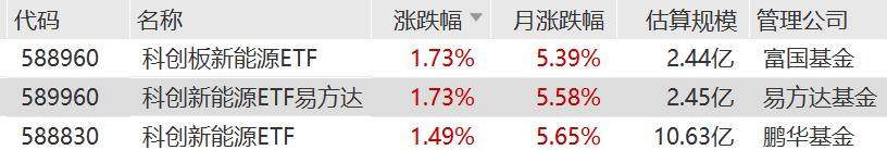 行业利好来袭,科创板新能源ETF、科创新能源ETF易方达上涨