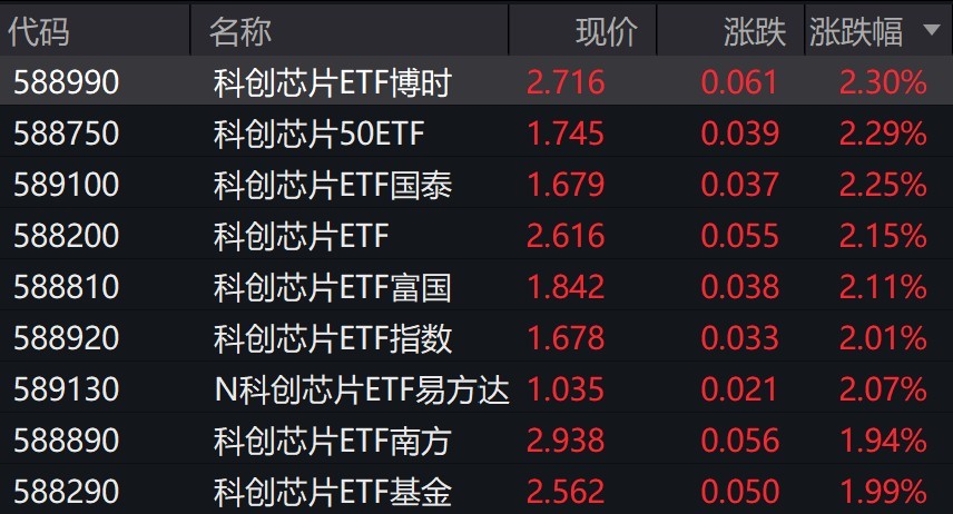 芯片概念股走强,科创芯片相关ETF涨约2%