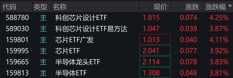 芯片概念股早盘走强,多只芯片相关ETF涨约4%