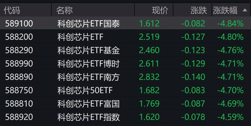 芯片概念股早盘走弱,科创芯片相关ETF跌超4%