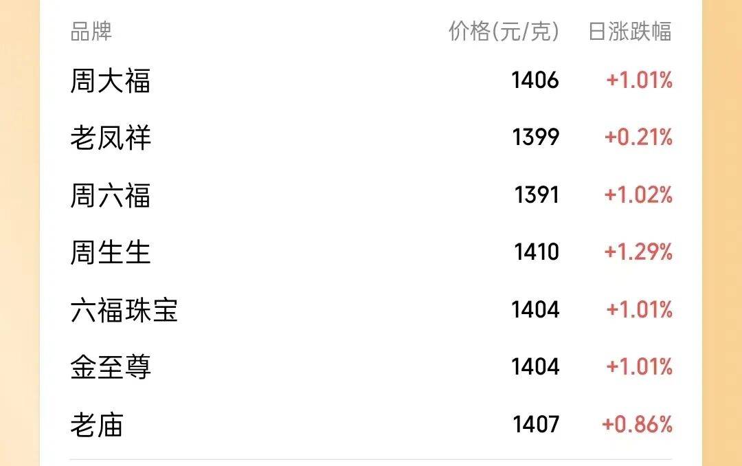 2026年开年,随着地缘政治的动荡,国际金价继续上扬。 1月9日,纽约商品交易所2月交割的黄金期价报每盎司4500.90美元,上涨0.90%;纽商所3月交割的白银期价报每盎司79.341美元,涨幅为5.59%。 受持续 的市场避险需求推动,贵金属价格全周上涨,其中纽商所黄金期货主力合约价格上涨3.96%。 工商银行:上调积存金门槛 银行积存金业务因支持实物赎回等特点,受到部分黄金投资者的青睐。自金价一路高涨以来,银行多次调整积存金起购门槛。 截至发稿,据腾讯理财通数据, 多家黄金珠宝品牌公布的境内足金首饰价格延续近期涨势,部分品牌克价超过1400元。 | 品牌 | 价格(元/克) 日涨跌幅 | | | --- | --- | --- | | 周大福 | 1406 | +1.01% | | 老凤祥 | 1399 | +0.21% | | 周六福 | 1391 | +1.02% | | 周生生 | 1410 | +1.29% | | 六福珠宝 | 1404 | +1.01% | | 美幸尊 | 1404 | +1.01% | | 老庙 | 1407 | +0.86% | 随着金价的飙升,黄金交易风险陡增。最近中国 ...