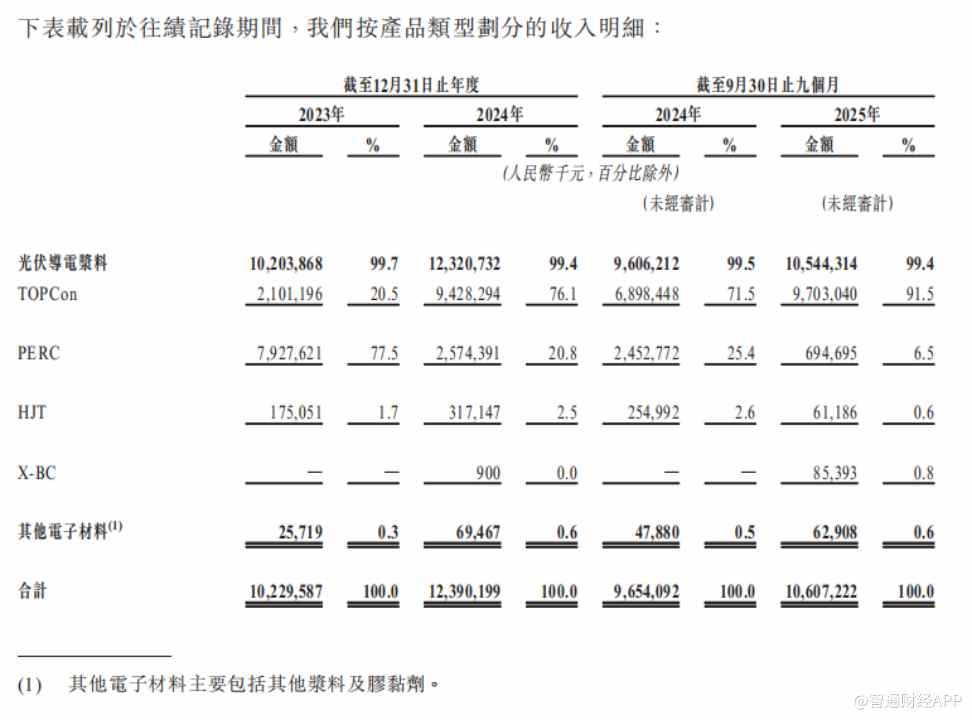 当光伏行业成本逻辑完成从"拥硅为王"到"降银为要"的结构性转变,半导体材料国产替代进入攻坚阶 段,先进材料企业正迎来主业升级与跨界突破的双重命题。 1月14日,全球光伏导电银浆龙头常州聚和新材料股份有限公司(下称"聚和材料",688503.SH)正式向 港交所主板递交上市申请,华泰国际、杰富瑞担任联席保荐人。这家已在A股登陆的企业,此次冲 击"H+A"双资本平台,除了为巩固光伏主业优势补充资金,还意在为半导体材料跨界布局积蓄动能。 光伏导电浆料全球龙头,技术迭代把握降银先机 招股书显示,聚和材料成立于2015年,是一家由研发驱动的先进材料公司,公司的产品主要包括光伏导 电材料和其他电子材料。在光伏导电浆料领域,聚和材料构建了覆盖TOPCon、PERC、HJT及X-BC等 全主流路线的产品矩阵。在当前N型电池成为市场主流的背景下,公司产品结构与行业趋势高度契合。 2025年前九月,公司TOPCon系列浆料收入占比已达91.5%。据灼识咨询数据,截至2025年9月30日止九 个月,公司光伏导电浆料销售收入在全球所有制造商中排名第一,市场份额27%。 | | | 截至12月31日止年度 | | | | 截至9月30 ...
