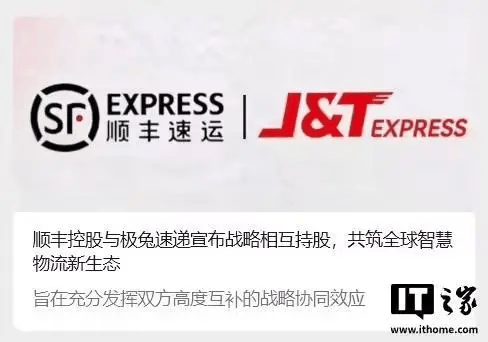 【来源:IT之家】 1 月 15 日消息,顺丰控股与极兔速递今日联合发布公告,宣布达成一项战略性的相互持股协议,将互 为对方增发新股,投资交易金额达 83 亿港元(IT之家注:现汇率约合 74.35 亿元人民币)。 IT之家从合作公告获悉,顺丰将凭借在跨境头程与干线段的核心资源优势和成熟运营体系,结合极兔在 全球 13 个国家的末端网络与本地化运营优势,共同增强端到端跨境物流解决方案的网络覆盖和产品竞 争力。同时,在国内业务方面,双方在网络资源、客户群体、产品结构和差异化上具备较大互补协同空 间,有助于共同拓展服务边界。 根据协议,顺丰控股将向极兔速递增发 2.26 亿股 H 股股份,发行价为每股 36.74 港元;极兔速递将向 顺丰控股增发 8.22 亿股 B 类股份,发行价为每股 10.10 港元。交易完成后,顺丰控股将持有极兔速递 10% 的股份,极兔速递将持有顺丰控股 4.29% 的股份。 合作公告称,此次合作旨在借助双方优势资源,共同构建一个覆盖更广、效率更高、更具韧性的全球一 体化物流网络,以更好地服务中国企业出海及构建全球电商物流新格局。 ...