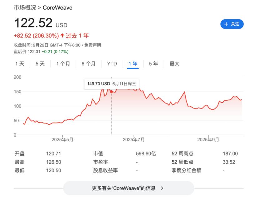 2025年最引人注目的科技股之一,一定是今年上市的CoreWeave。2025年由英伟达支持的CoreWeave上市,自IPO以 来,其股价已上涨两倍多,最高涨幅接近4倍。 CoreWeave:从"矿场"到"算力工厂" CoreWeave是一家美国的AI云端运算企业,总部位于新泽西州利文斯顿。该公司成立于2017年,公司最初以加密货币 挖矿企业"Atlantic Crypto" 的名义运营,核心业务是利用 GPU 进行以太坊挖矿,并将相关服务出租给其他加密货币矿 工。不过,随着 2018-2019 年加密货币市场进入降温期,公司便更名为 CoreWeave,将业务重心转向云计算及 GPU 加 速的基础设施服务,充分借助自身庞大的 GPU 库存来满足企业客户的需求。 财报显示,CoreWeave在2025年上半年营收为21.94亿美元,较上年同期的5.84亿美元增长275.68%。截至2025年6月30 日,CoreWeave持有的现金及现金等价物为11.53亿美元,现有总资产为39.46亿美元,总资产为262亿美元,总负债为 224亿美元,所有者权益为26.58亿美元。 | | Three Months li ...