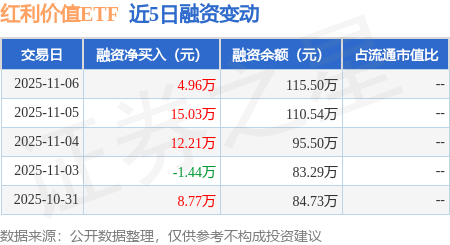 红利价值ETF:11月6日融资净买入4.96万元,连续3日累计净买入32.21万元