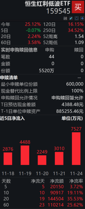 恒生红利低波ETF(159545)连获10日资金净流入合计近10亿,盘中净申购2340万份;险资加码高股息资产配置