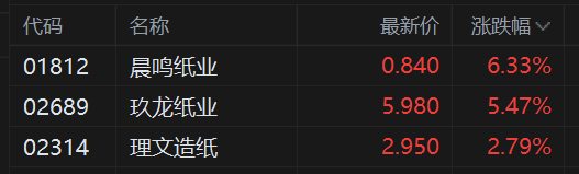 港股异动丨纸业股拉升 晨鸣纸业涨超6% 造纸行业涨价潮持续升温且力度加码