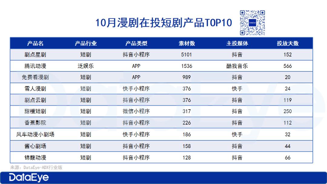 10月漫剧行业观察:超4000款产品在投,单素材曝光超5亿,哪些厂商正在悄悄入局?