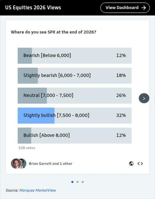 高盛集团一项覆盖超过900名客户的最新调查显示,投资者正以一种分化且复杂的视角展望2026年的资 产前景。 整体来看,市场情绪由几大核心主题主导:对人工智能驱动的科技股抱有持续但更趋谨慎的乐观,对美 联储降息路径的高度关注,以及在宏观不确定性下对黄金等避险资产的持续偏好。 这项在2025年仅剩20个交易日之际进行的调查,揭示了投资者在关键资产类别上的最新动态。其中,最 引人注目的趋势是,尽管近期市场出现了从科技股向防御性板块的轮动,但科技与媒体电信(TMT) 行业依然是投资者在2026年最为看好的领域。与此同时,AI发展减速被视为股市面临的最大风险,凸 显了该技术在当前市场定价中的核心地位。 在宏观层面,市场普遍预期美联储将在2026年上半年启动降息周期,但对降息的具体时点和幅度存在分 歧,且部分投资者认为当前预期可能过于乐观。值得注意的是,目前投资者对美元的看法出现了微妙转 变,看多美元的人数略多于看空方。这一预期组合可能打破长期存在的市场模式,并对全球资产配置产 生深远影响。 而在信用贷市场,AI不仅是风险议题,更预示着巨大的融资需求,过半数受访者预计相关债券发行规 模将十分可观。 大宗商品方面,市场情绪 ...