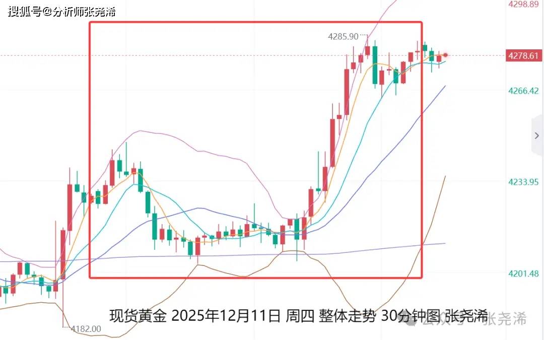 张尧浠:周初请超预期增幅、金价短期看涨动力加大 上交易日周四(12月11日):国际黄金继续反弹走强收阳,多头动力加大,并有所突破近期连续反弹的阻力压制,暗示后市看涨预期增强,短期有望继续反 弹上行,触及4380美元乃至更高位置。 具体走势上,金价自亚市开于4224.45美元/盎司,先行走强触及4247美元附近遇阻回落,并陷入4207-4220美元区间内筑底盘整,并据此录得日内低点 4204.31美元,一直到美盘开盘后,多头开始发力,持续回升走强,延续到盘尾时段录得日内高点4285.66美元,最终动力减缓高位调整运行,收于4279.56 美元,日振幅81.35美元,收涨55.11美元,涨幅1.3%。 影响上,受到支撑买盘的推动,以及美国上周初请失业金人数创下疫情后最大单周增幅。美元指数延续下跌趋势,推动金价回升走强,同时,白银的强劲 涨势也带动了黄金多头需求。 展望今日周五(12月12日):国际黄金开盘再度先行偏弱运行,受到一定的获利了结影响,但日内仍有看涨需求,当下,美元指数的走势看空预期加大,短 期将会继续回落,而支撑金价,另外,市场也无较大且持续的利空预期和前景,技术走势也看涨转强等等,因而,操作上,依然 ...