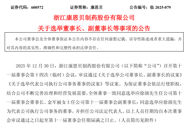 Group 1 - The core point of the article discusses the frequent changes in top management at companies like Kang En Bei, questioning the effectiveness of such changes in boosting performance during challenging times [1][6] - Kang En Bei has recently experienced a wave of executive turnover, with the resignation of Chairman Jiang Yi and board member Jiang Qian, both of whom were expected to serve until August 2027 [2][3] - The company has a history of management changes, with significant shifts occurring since the entry of Zhejiang Guomao Group in 2020, leading to concerns about the stability of its strategic direction [8][9] Group 2 - Kang En Bei's financial performance has stagnated, with revenue figures from 2020 to 2024 showing minimal growth, and the latest quarterly report indicating a slight year-on-year revenue increase of 1.27% [10][11] - The company's revenue breakdown for the first three quarters of 2025 shows that the traditional Chinese medicine segment remains the largest contributor, but sales of key products have not recovered, and the health consumer goods segment is still underperforming [10] - The stock price of Kang En Bei has been in decline, with a reported market value of 11.69 billion yuan, down approximately 80% from its peak [11]