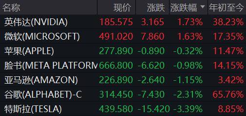 市场注意力高度聚焦于即将公布的美联储利率决议。芝商所的FedWatch工具最新显示,交易员押注本 周降息25个基点的概率已升至约89%。然而,市场也在密切关注美联储对未来政策路径的指引,尤其是 2026年的利率走向。东吴证券分析指出,美联储此次议息会议可能出现两种情景:一是鸽派降息,即降 息25个基点以支持疲软的劳动力市场,但可能引发市场对经济衰退的预期;二是鹰派降息,即降息但政 策指引偏强硬,可能引发市场对2026年降息预期的再调整。 大宗商品市场同步调整,国际油价显著回落。WTI原油期货跌破60美元/桶关口,布伦特原油收于62.48 美元/桶,双双下跌约2%。贵金属价格窄幅波动,伦敦金现微涨0.02%,白银现货企稳于58美元/盎司上 方。分析认为,油价短期仍处于偏弱震荡区间,而银价需警惕高位波动风险。 | 名称 | 现价 涨跌 涨跌幅 · 年初至今 | | | | --- | --- | --- | --- | | 英伟达(NVIDIA) | 185.575 3.165 | 1.73% 38.23% | | | 微软(MICROSOFT) | 491.020 7.860 1.63% | | 17.35% ...