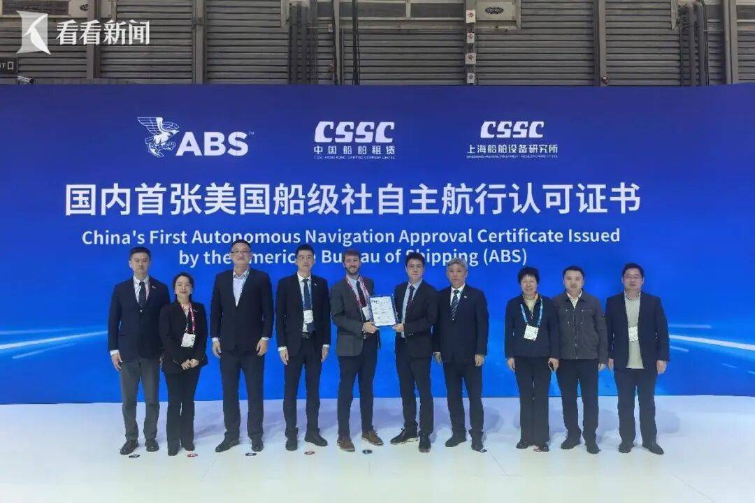 "CS JINAN"轮自主航行系统的实船应用,将有效降低人为操作和航行安全风险,显著减轻船员工作负 担,提升船东运营效率,也是全球首艘具备开阔水域自主航行能力的大型远洋散货船。(完) 中新社上海12月4日电 (谢梦圆 何宝新 李秋莹)记者4日从2025年中国国际海事会展上获悉,搭载自主航 行系统的"CS JINAN"轮获得美国船级社(ABS)颁发的中国首张自主航行认可证书,并成为全球首艘获得 ABS自主航行认可证书的远洋散货船。此次颁证被业界视为全球散货船自主航行发展的重要里程碑。 "CS JINAN"轮隶属于中国船舶集团(香港)航运租赁有限公司,其搭载的自主航行系统由中国船舶集团第 七〇四研究所独立研发。在认证过程中,ABS对该轮的自主航行系统进行了全面且严苛的实船测试,并 就大型远洋船舶融合感知、避碰决策、欠驱动控制等关键技术,以及船舶在有人监控下的自主航行能力 进行了全面的实船验证,最终表明其在可靠性、安全性及智能化水平等核心指标方面均达到国际领先标 准。 ...